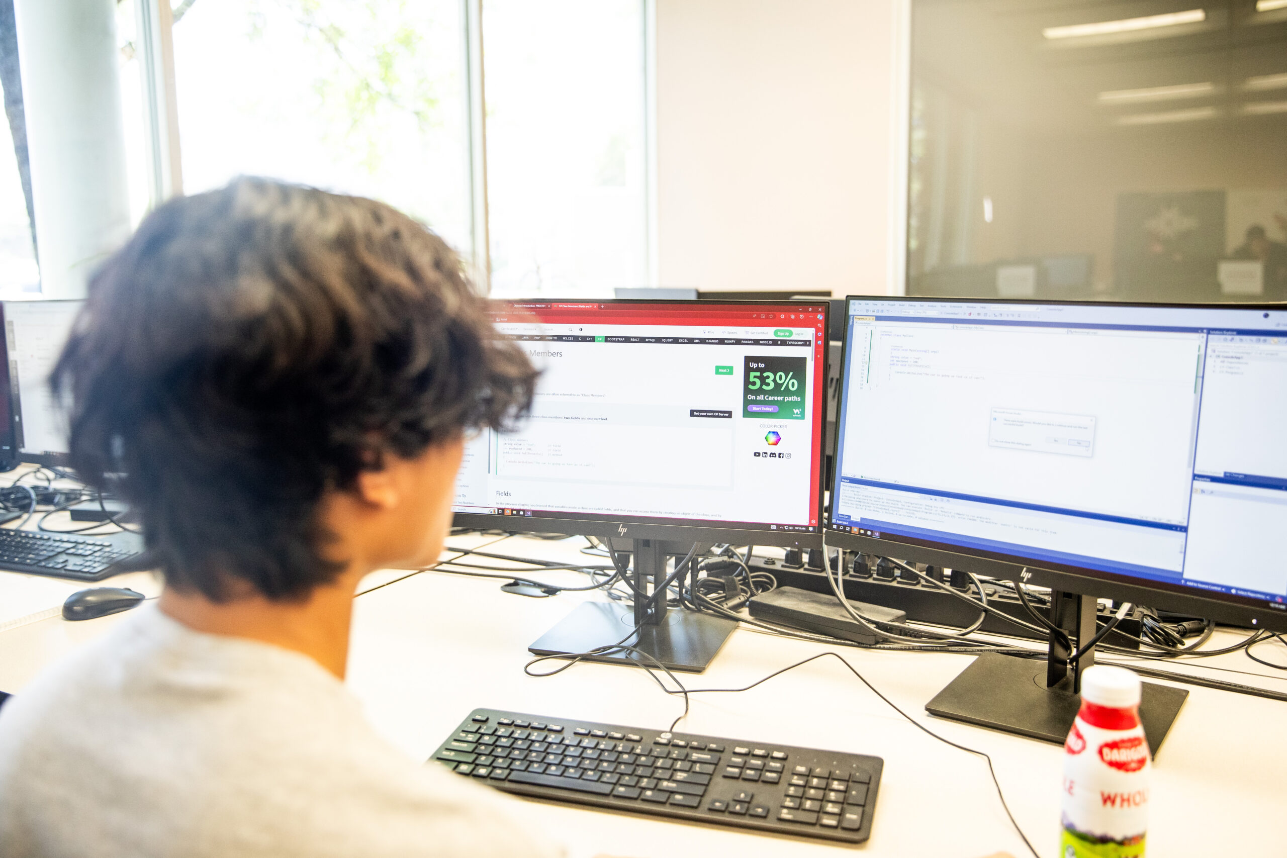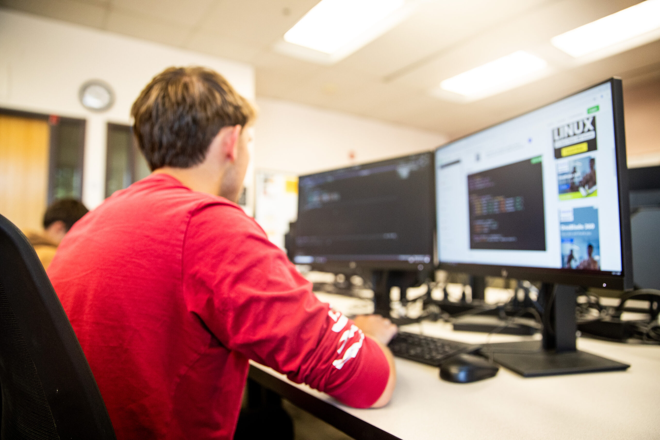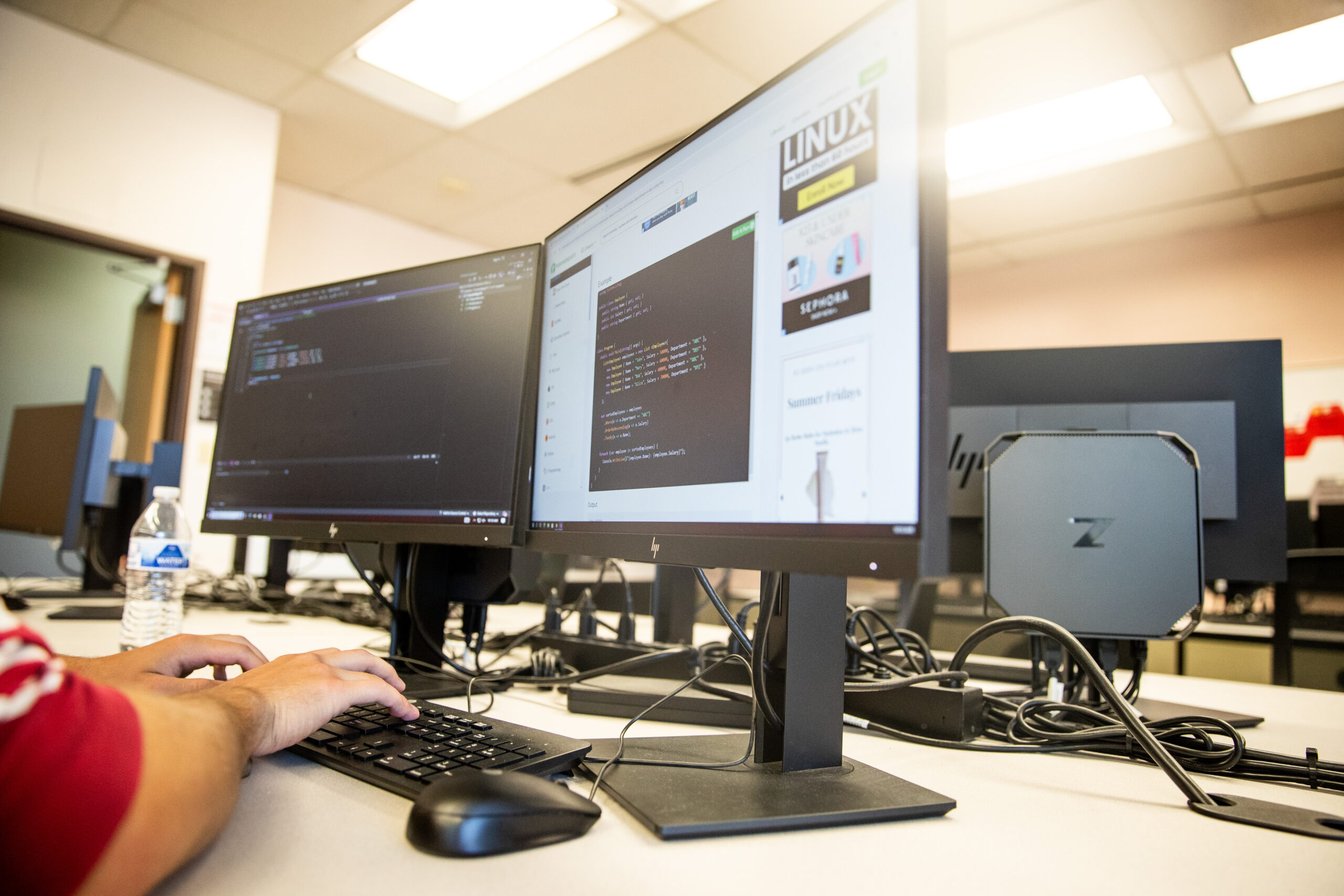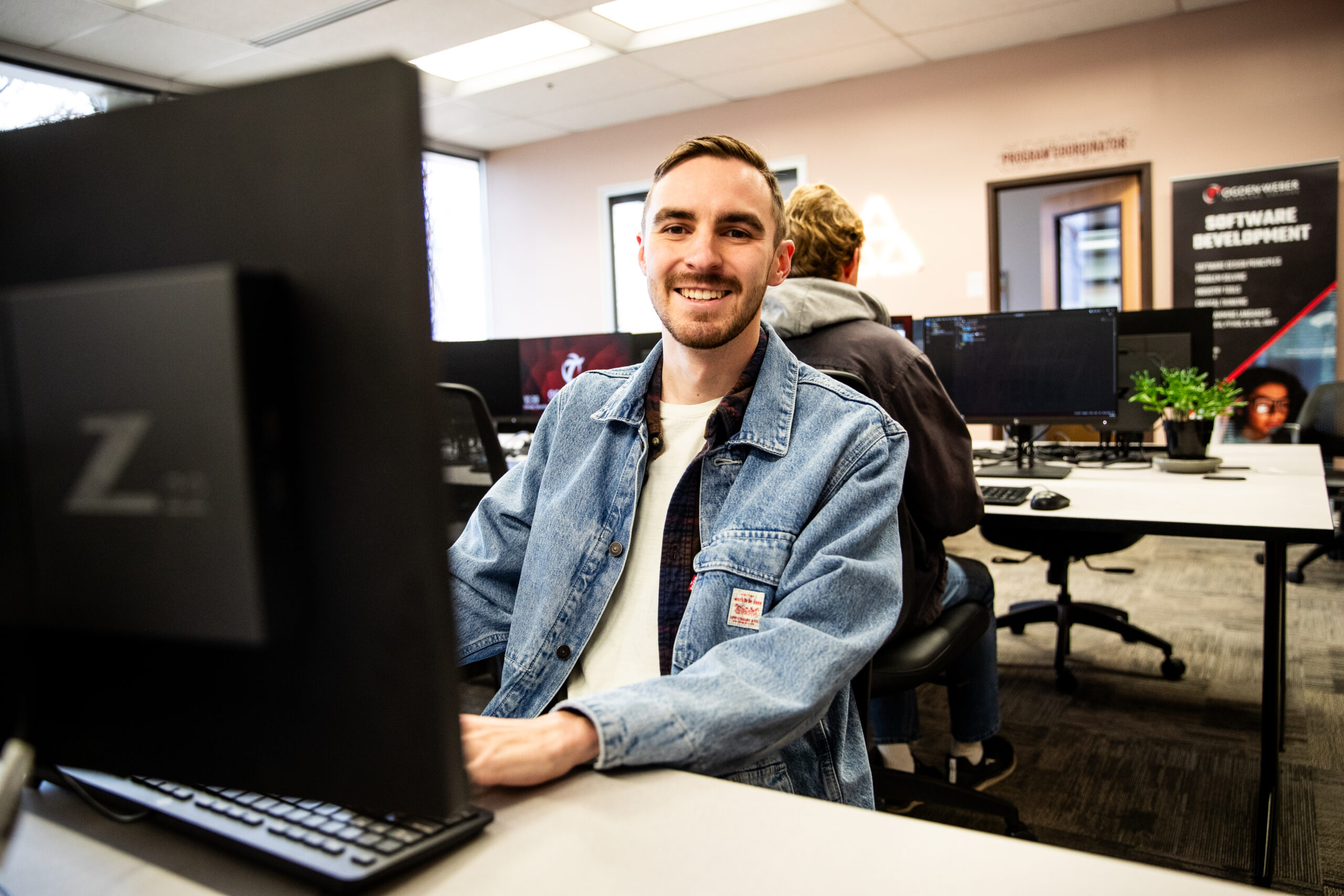 The Software Development program offers students the opportunity to learn the languages and tools needed to start a career as a Software Developer. Students will learn code documenting, testing, and debugging to create and maintain software applications. Languages and technologies taught will cover the spectrum, from the front-end user interface to the back-end server, both desktop and mobile. Students will learn technologies and skills like Hypertext Markup Language (HTML), Cascading Style Sheets (CSS), JavaScript, User Interface and User Experience (UI/UX), Application Programming Interfaces (API), Developer Operations (DevOps), and Cloud Computing.